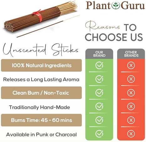 100% natural unscented, uncolored incense sticks 11”