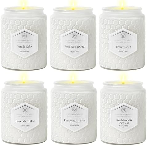 6 Pack Aromatherapy Candles for Home Scented, Gifts Set for Women, Natural Soy Wax Jar, 33 oz 240 Hour Long Lasting, for Birthday, Valentine’s Day, White