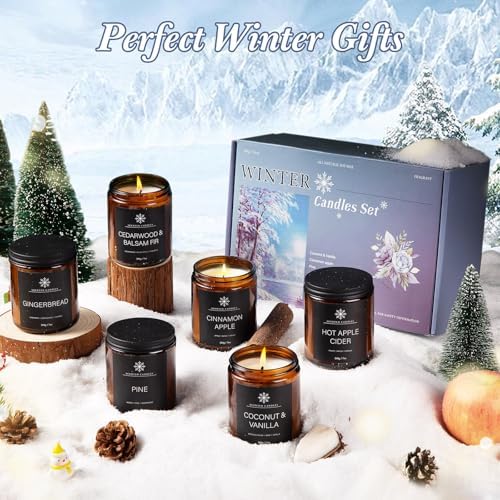 6 Pack Winter Candles for Home Scented, Aromatherapy Candles Gift for Women Men, 42oz 300 Hour Long Lasting Candle, Winter Candle Gift for Holiday, Gifts for Birthday, Valentine’s Day